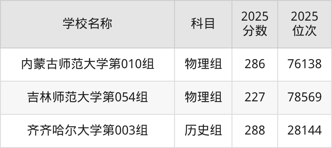 吉林高考物理组共有2所一本大学在200到300分之间录取,包含内蒙古师范大学、吉林师范大学。