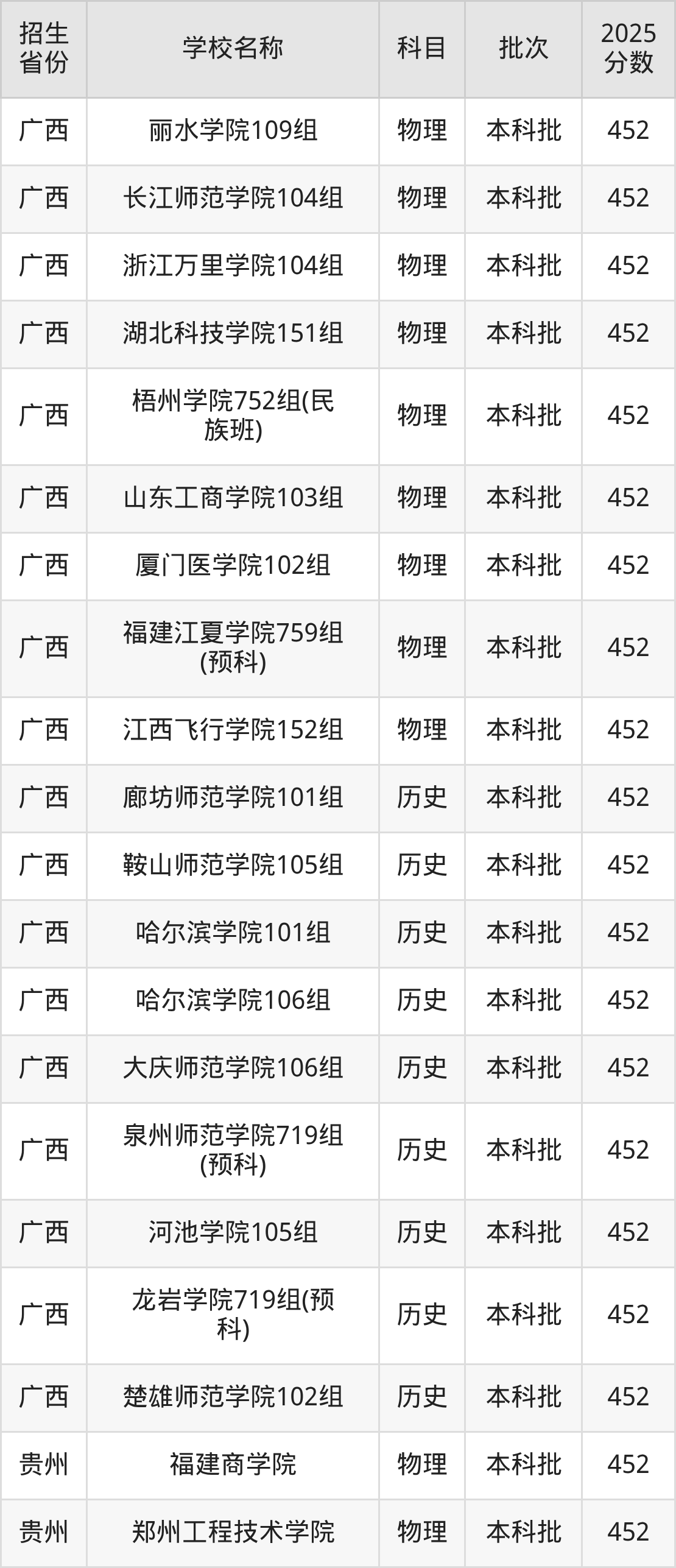 二、各省452分的二本公办大学名单1.广西高考