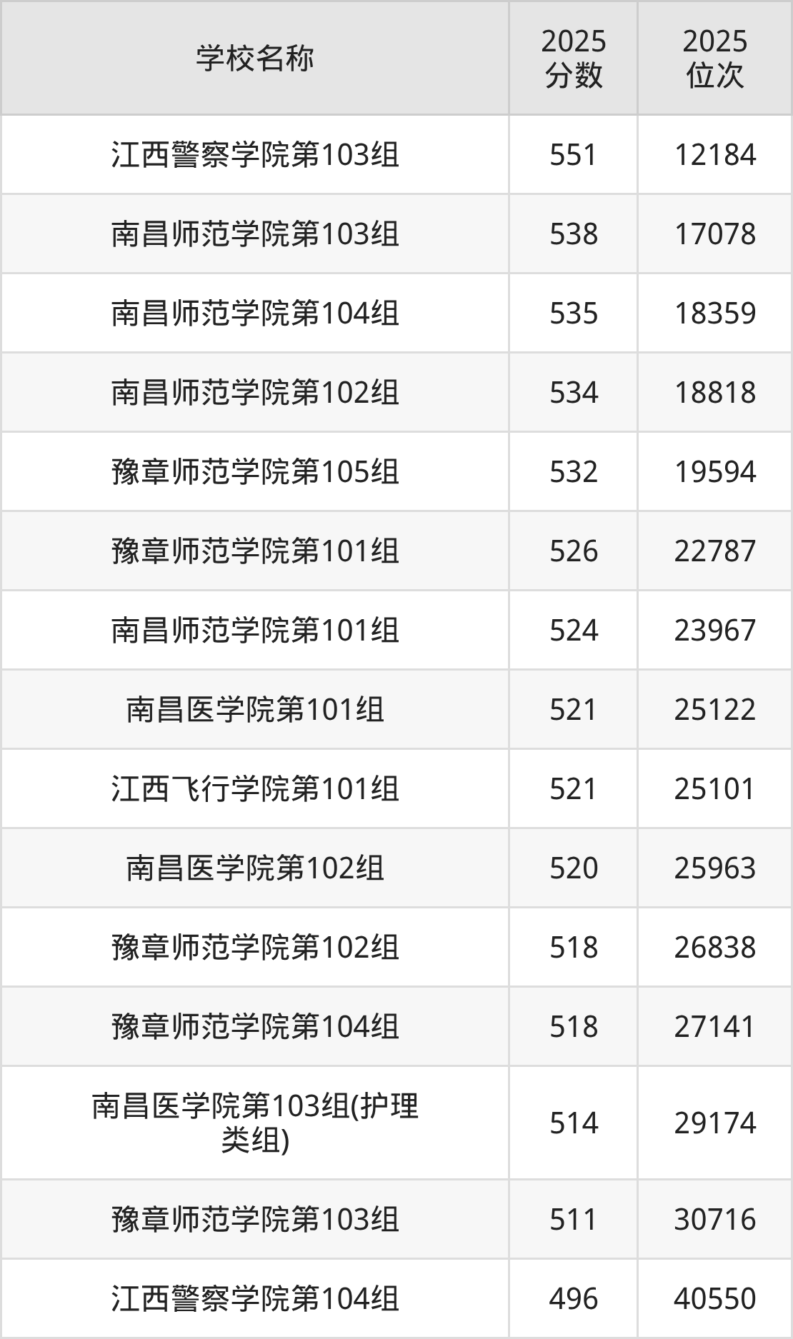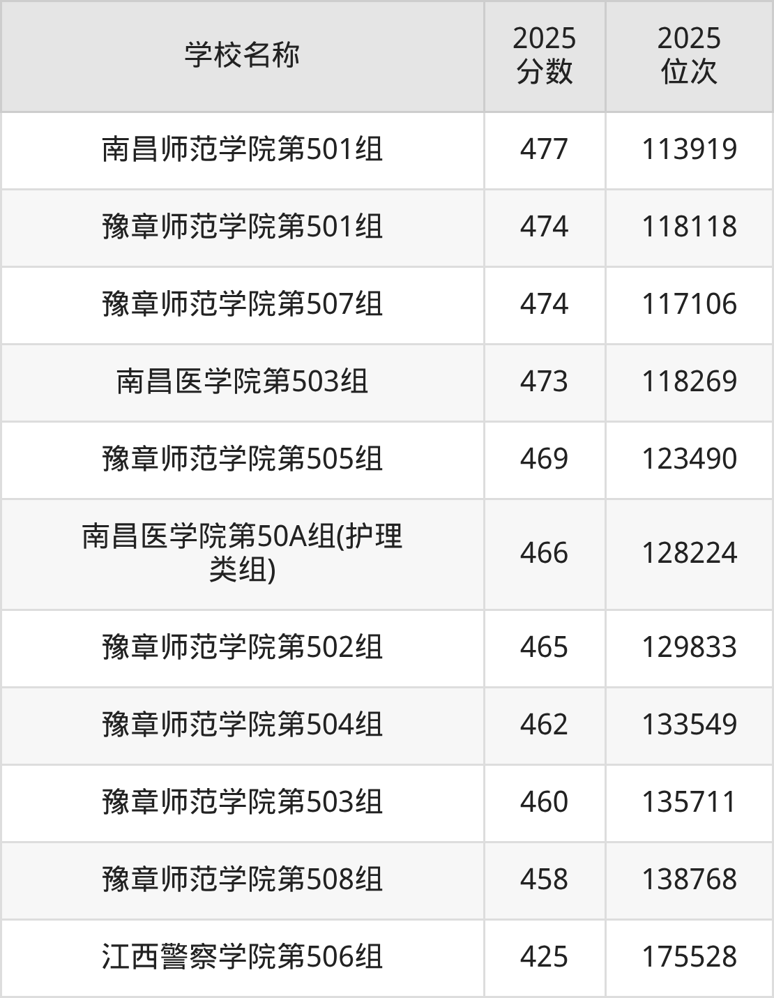 下文为2025年南昌市公办二本大学在江西历史类录取分数线和位次排名表,供大家参考: