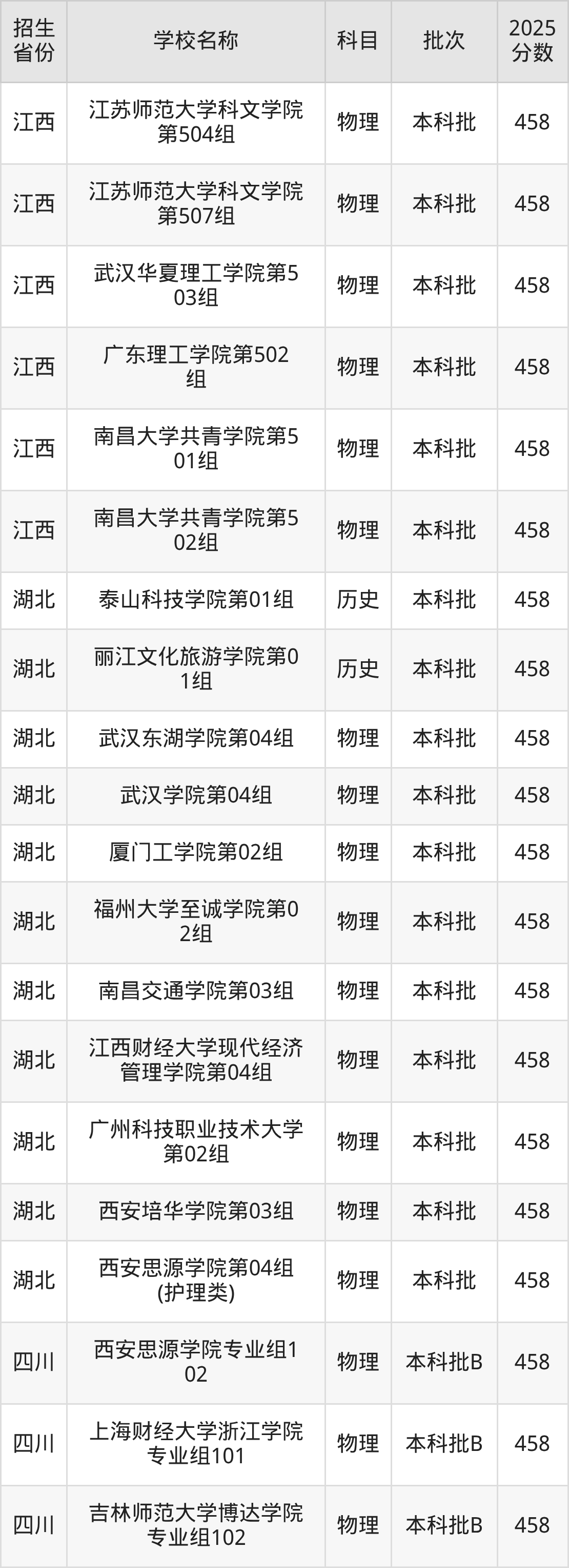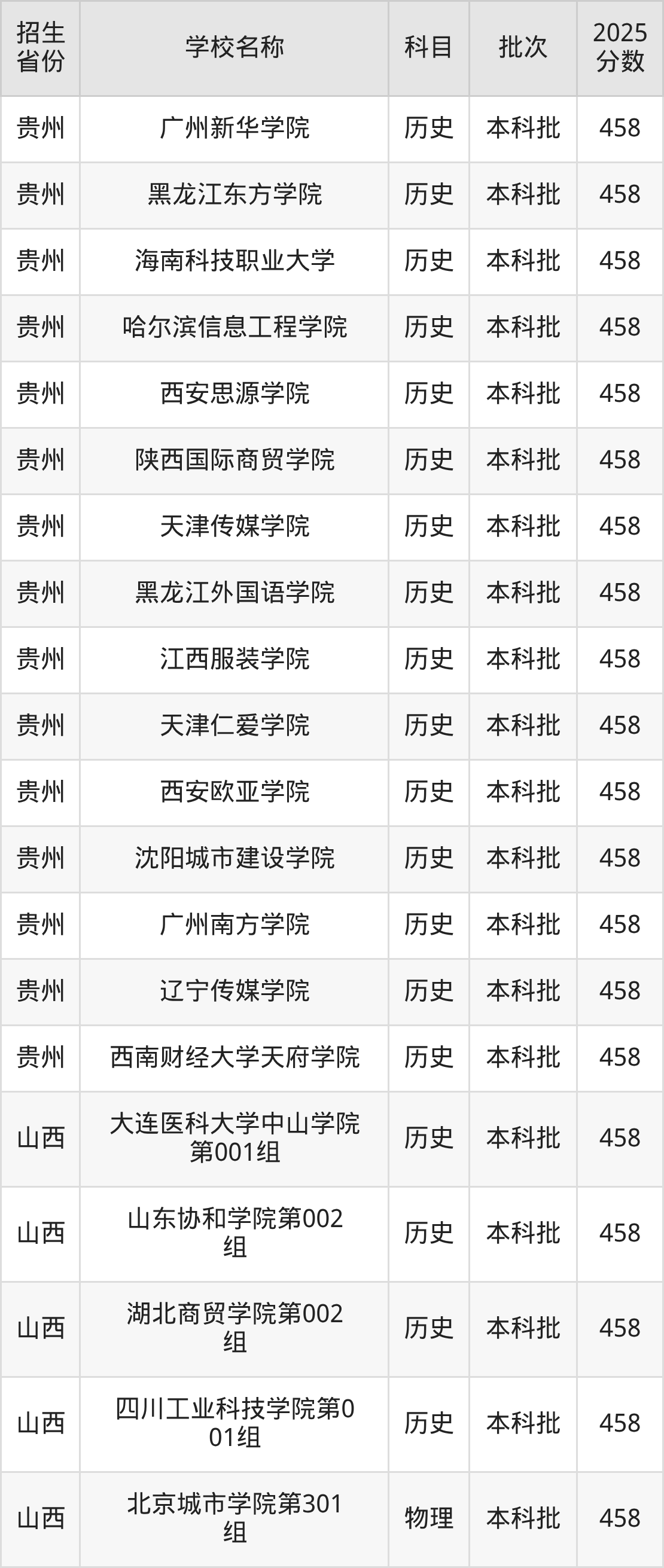 一、458分能上什么大学筛选全国各省2025年录取分数线为458分的二本民办大学如下: