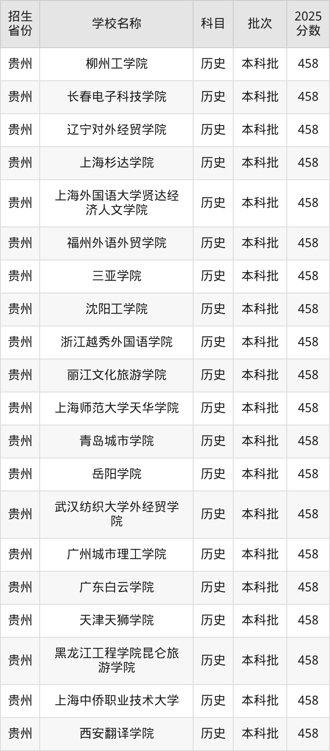 二、各省458分的二本民办大学名单1.贵州高考