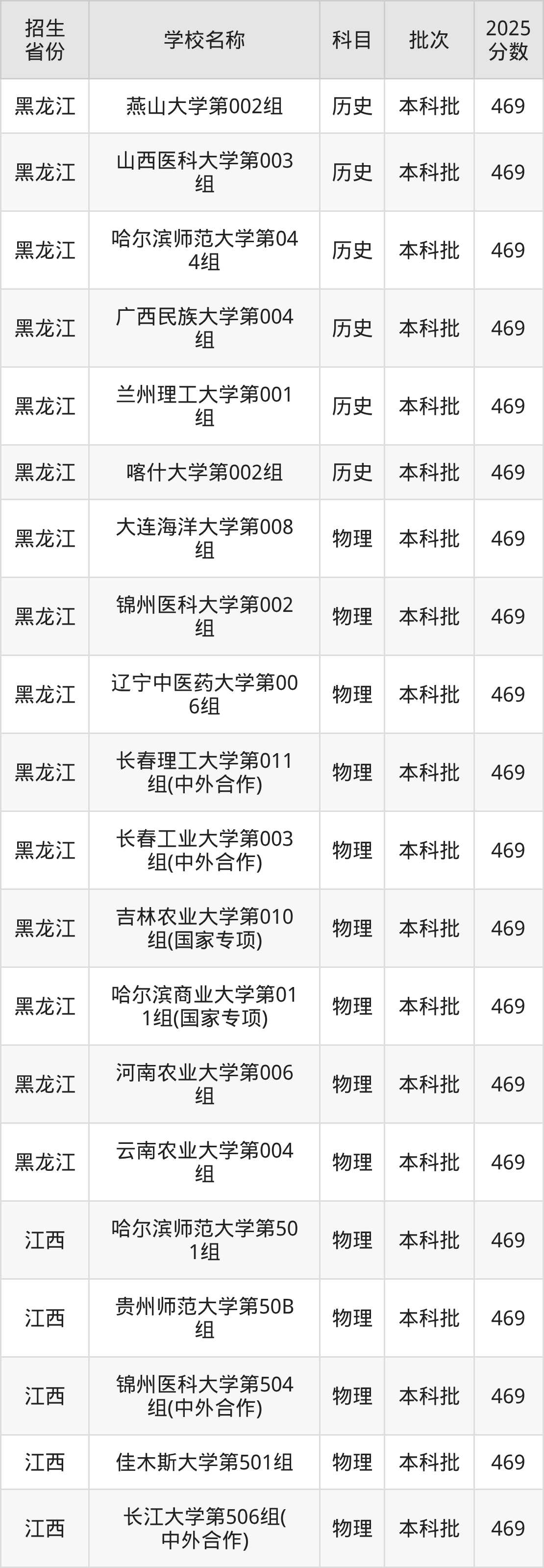 二、各省469分的一本大学名单1.黑龙江高考