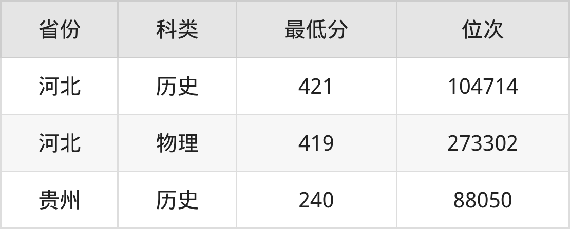 2025年保定职业技术学院电子商务专业在贵州录取最低分:240分,对应位次排名是88050名。