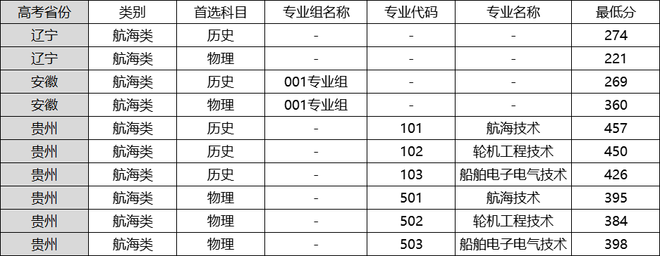 二、山东海事职业学院2025年提前批各专业录取分数线