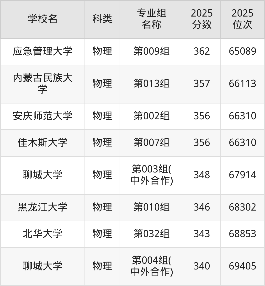 下面是吉林物理类362分能上的一本大学排名一览表: