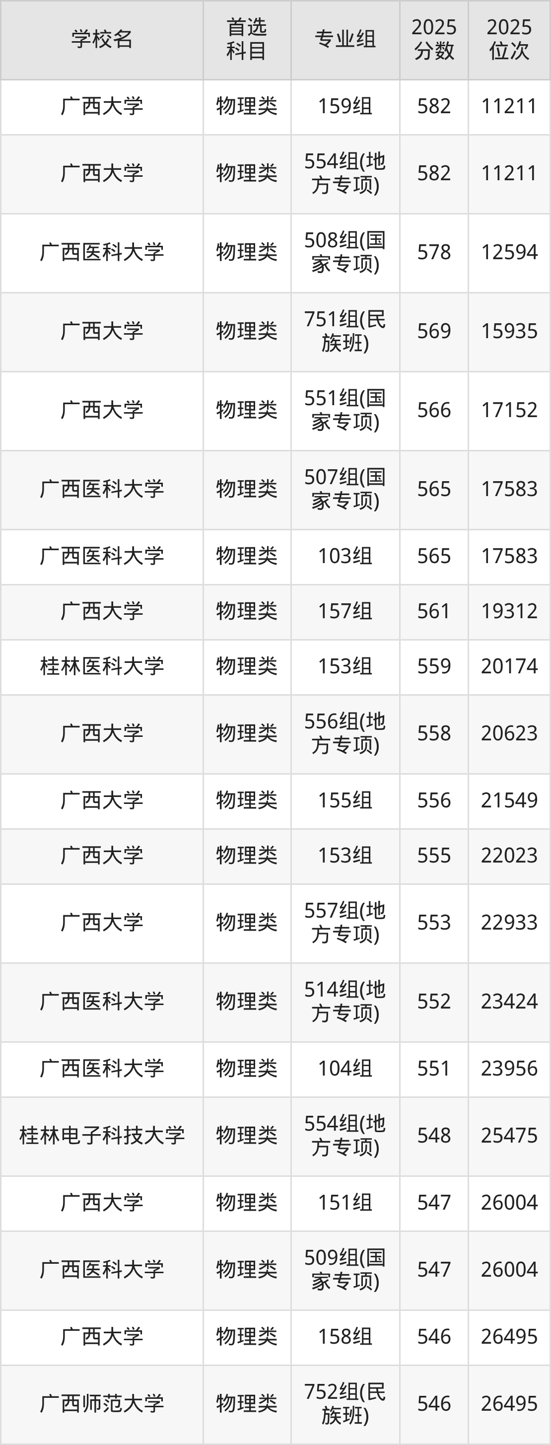 (3)广西医科大学511组(地方专项):583分、10897名;