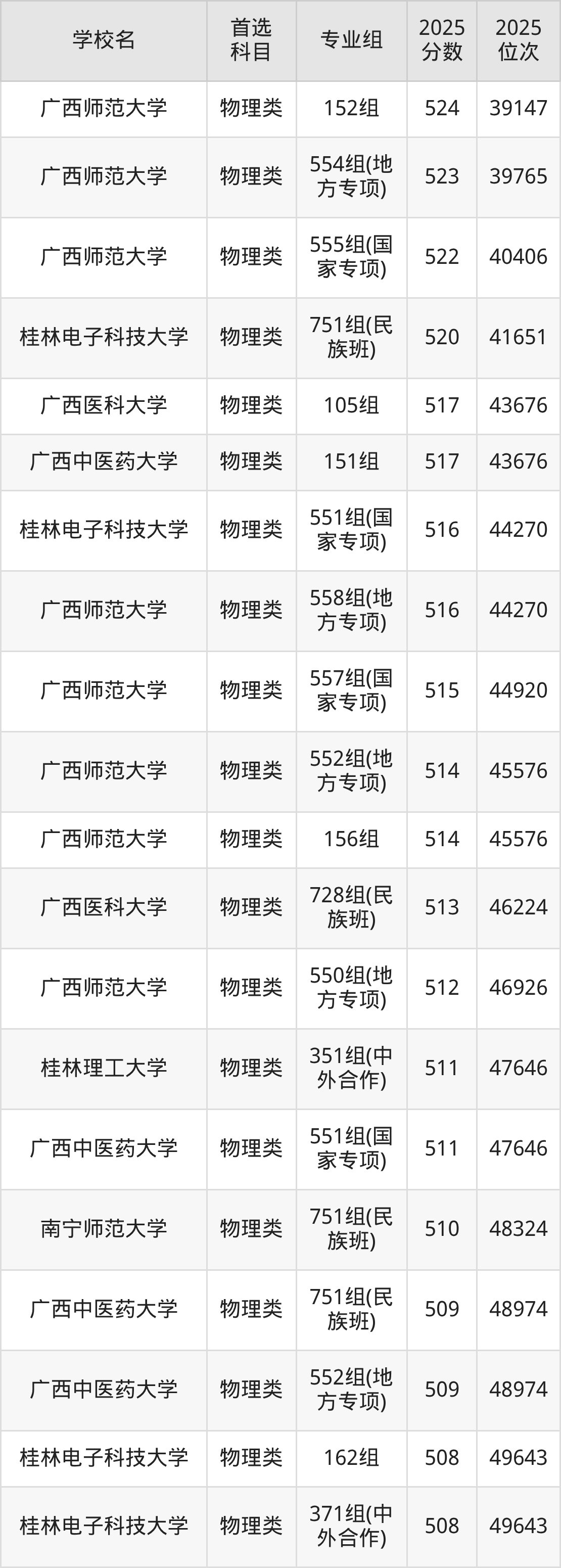 (5)广西医科大学320组(中外合作):429分、40781名;