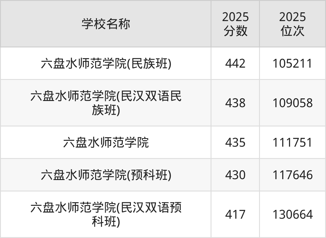 下文为2025年六盘水市二本师范大学在贵州物理类录取分数线和位次排名表,供大家参考: