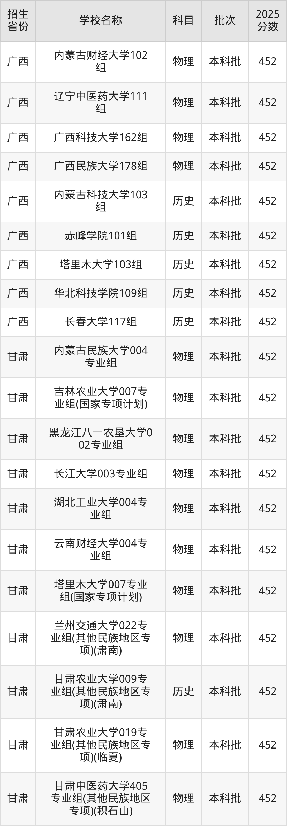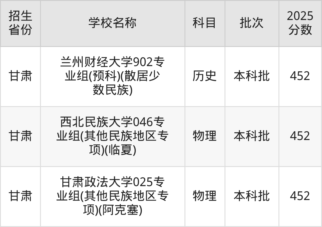 二、各省452分的一本大学名单1.甘肃高考