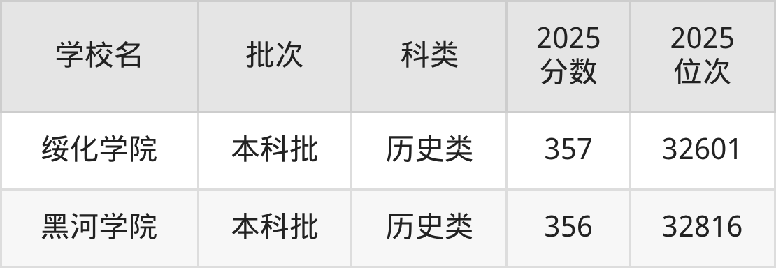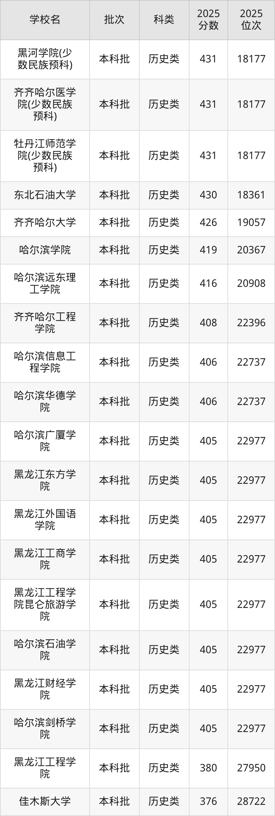 二、黑龙江本科大学2025年录取分数线