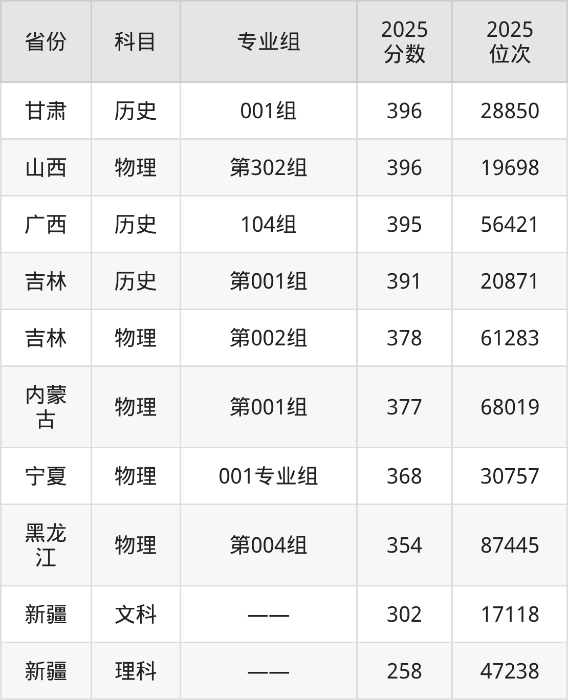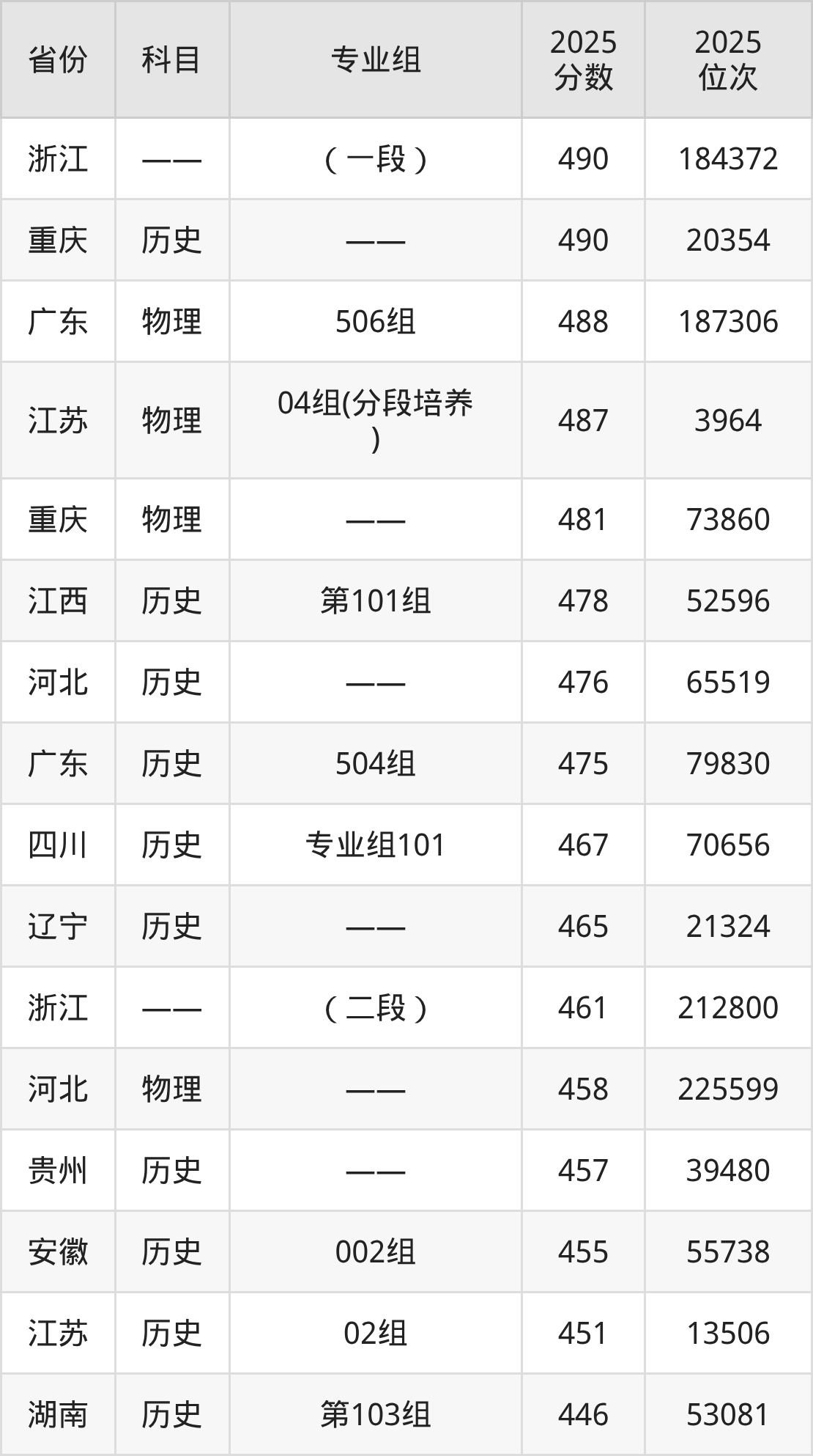 2025年江苏海事职业技术学院全国录取分数线258分到490分,录取最高在浙江、录取最低在新疆(理科)。