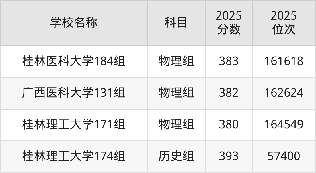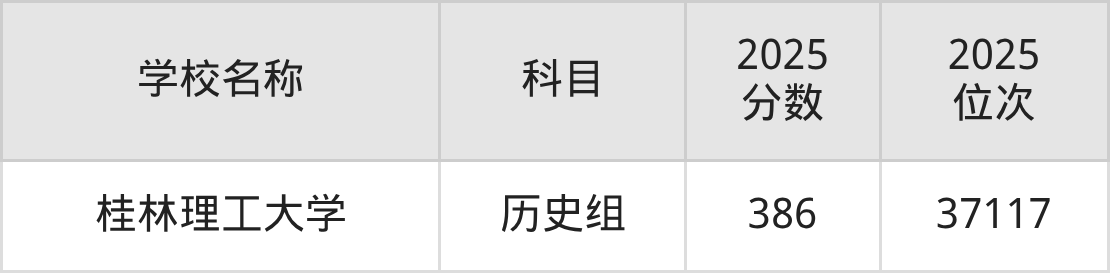 广西高考历史组共有1所一本大学在380到400分之间录取,包含桂林理工大学。