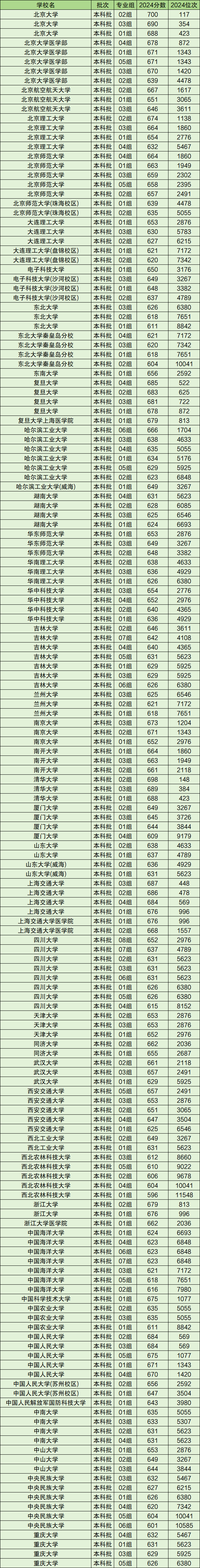 1、2024年985大学录取分数线及位次