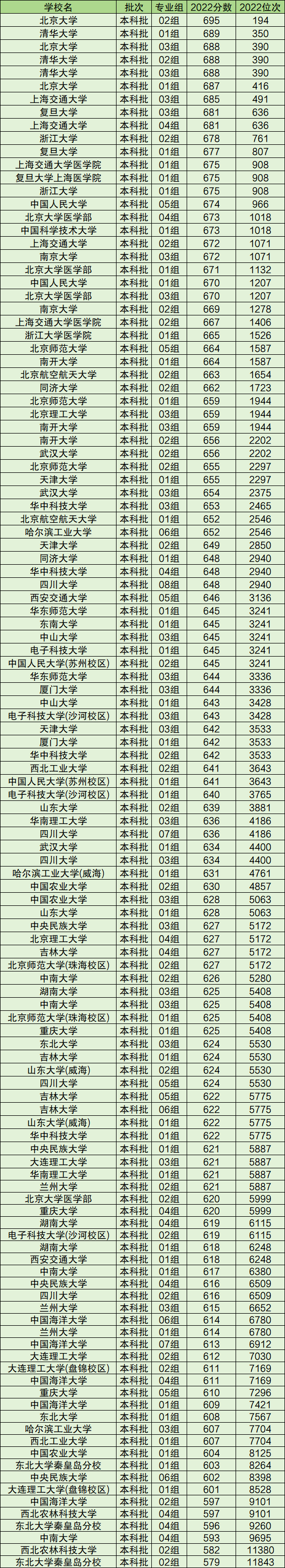 3、2022年985大学录取分数线及位次