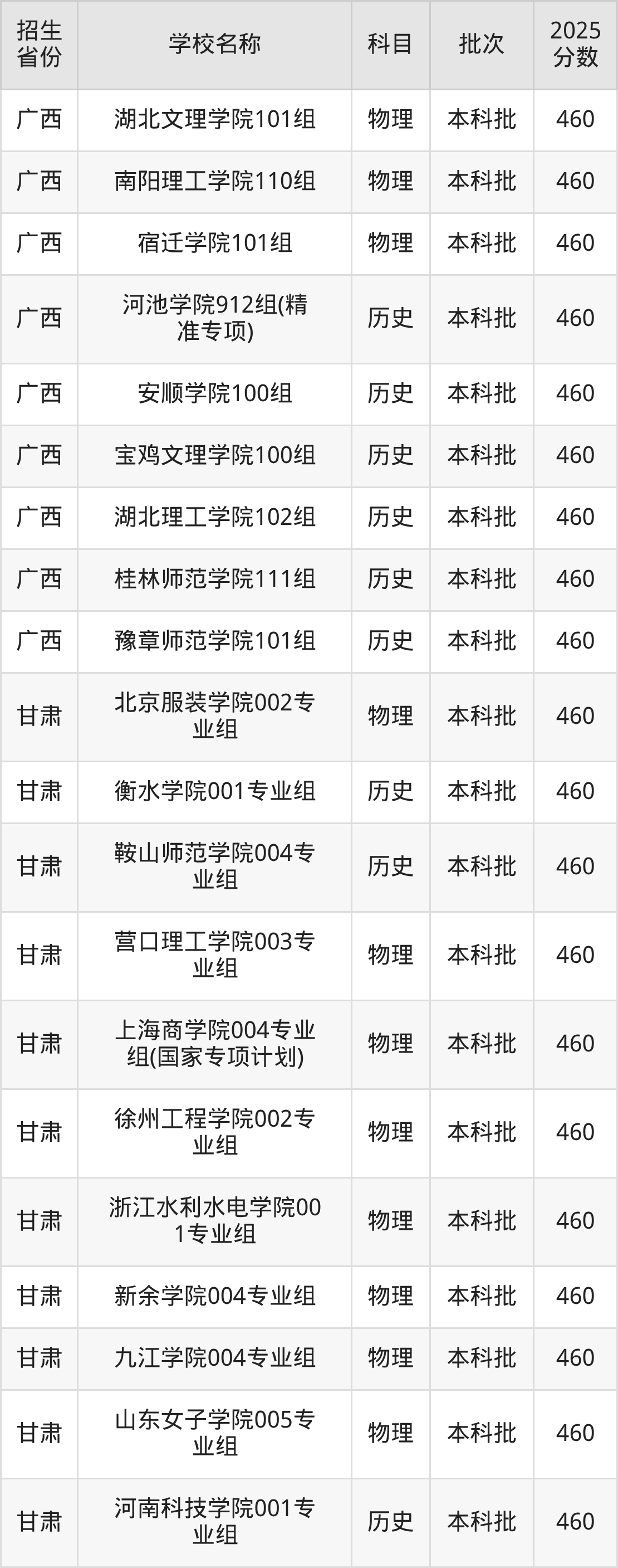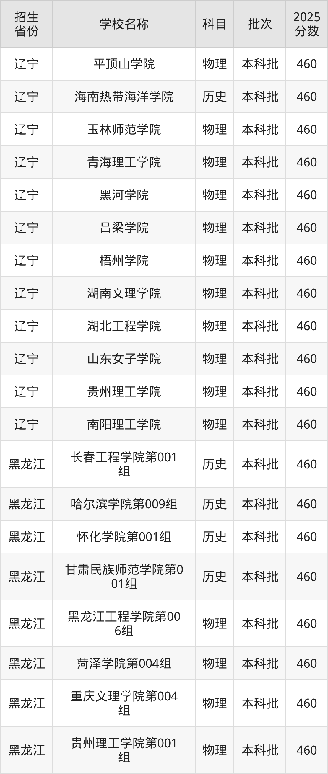 一、460分能上什么大学筛选全国各省2025年录取分数线为460分的二本公办大学如下: