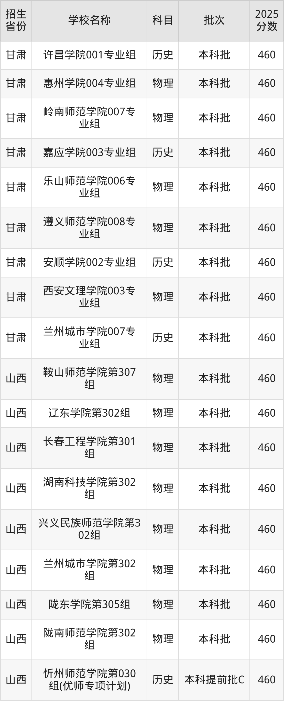 山西省历史组分数线是460分的二本公办大学有:忻州师范学院。