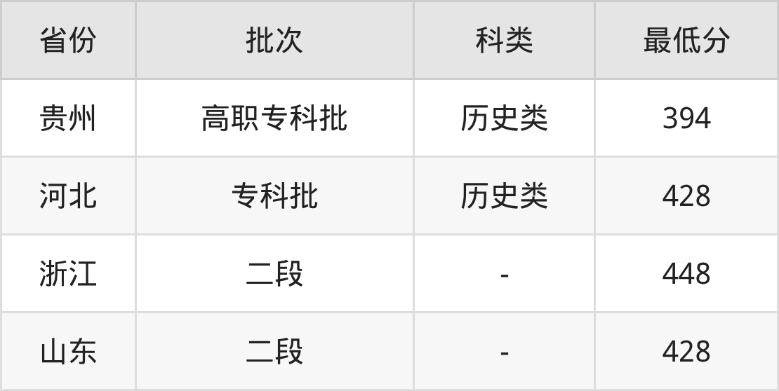 上饶职业技术学院大数据与会计专业录取分数线2025各省汇总显示,省外招生最低分为河北428分、浙江448分、山东428分、贵州394分。更多专业分数详情、选科要求、专业简介等均可在正文查阅。
