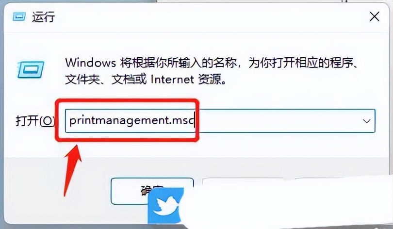 1、首先,按键盘上的【 Win + R 】组合键,打开运行,然后输入【printmanagement.msc】命令,按【确定或回车】;