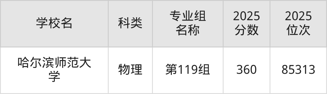 2025年黑龙江物理类本科线为360分,压线能上的一本大学共计1所,对应大学最低位次排名为85313名。公办大学有哈尔滨师范大学。