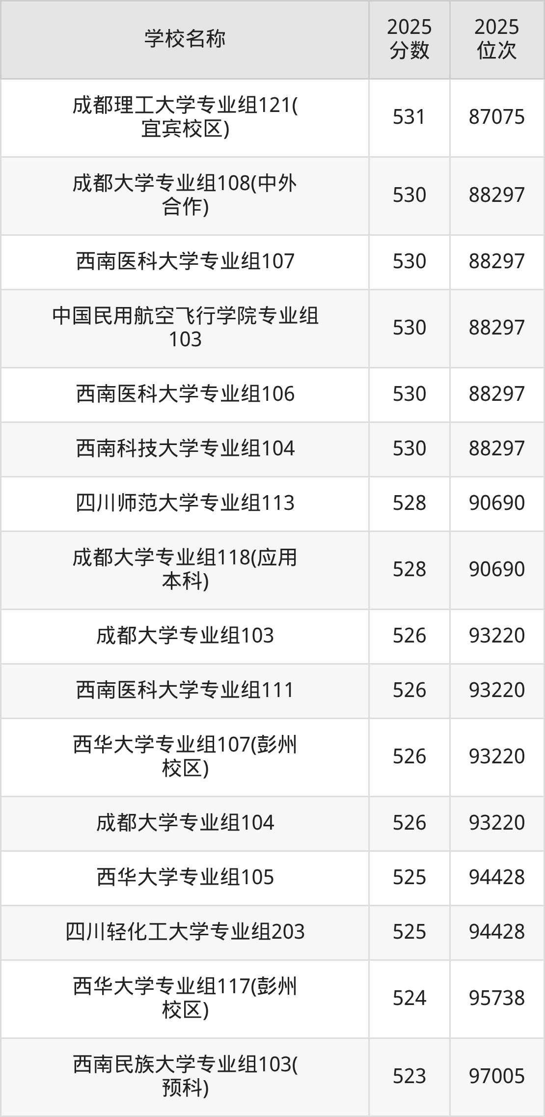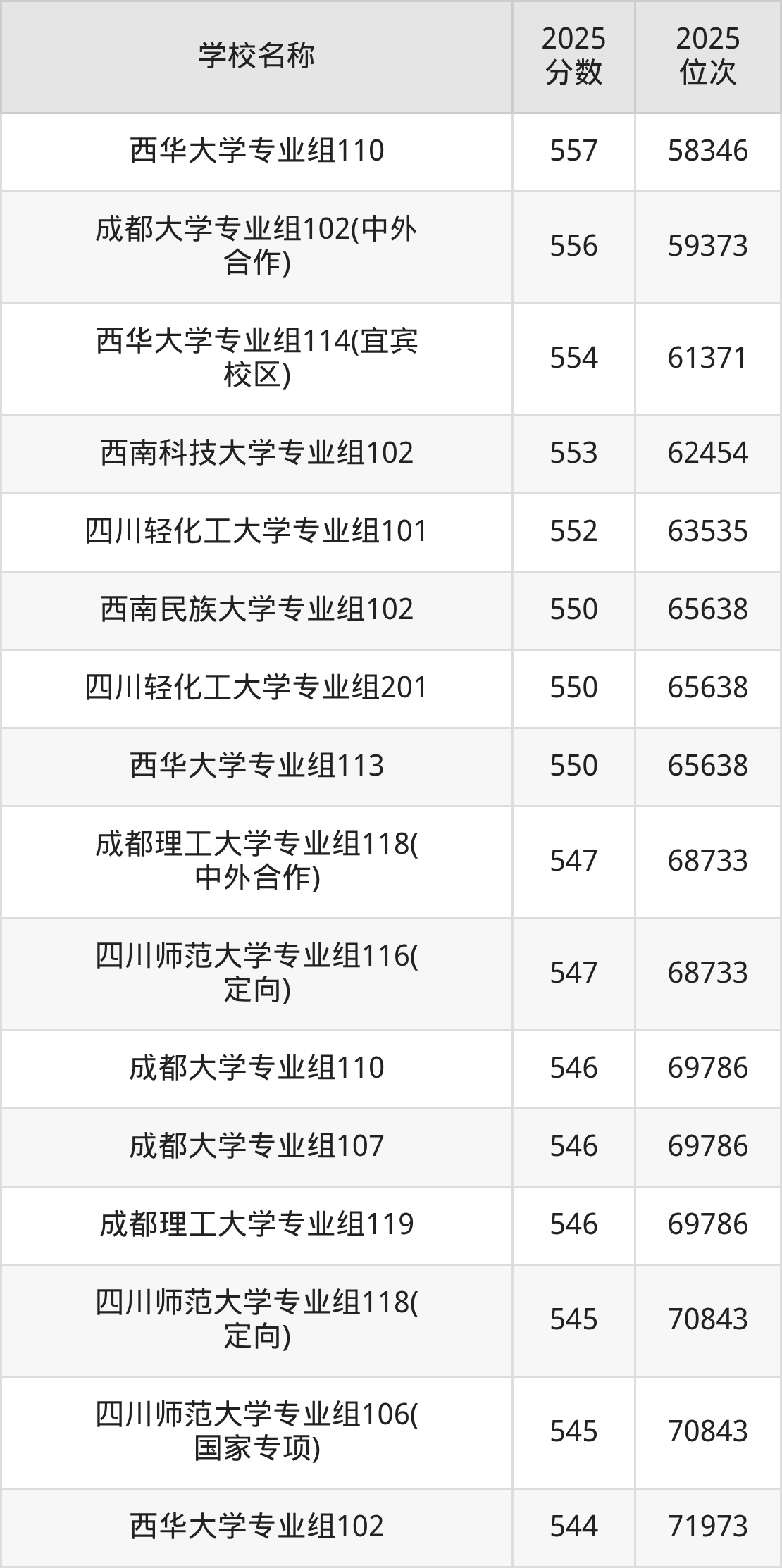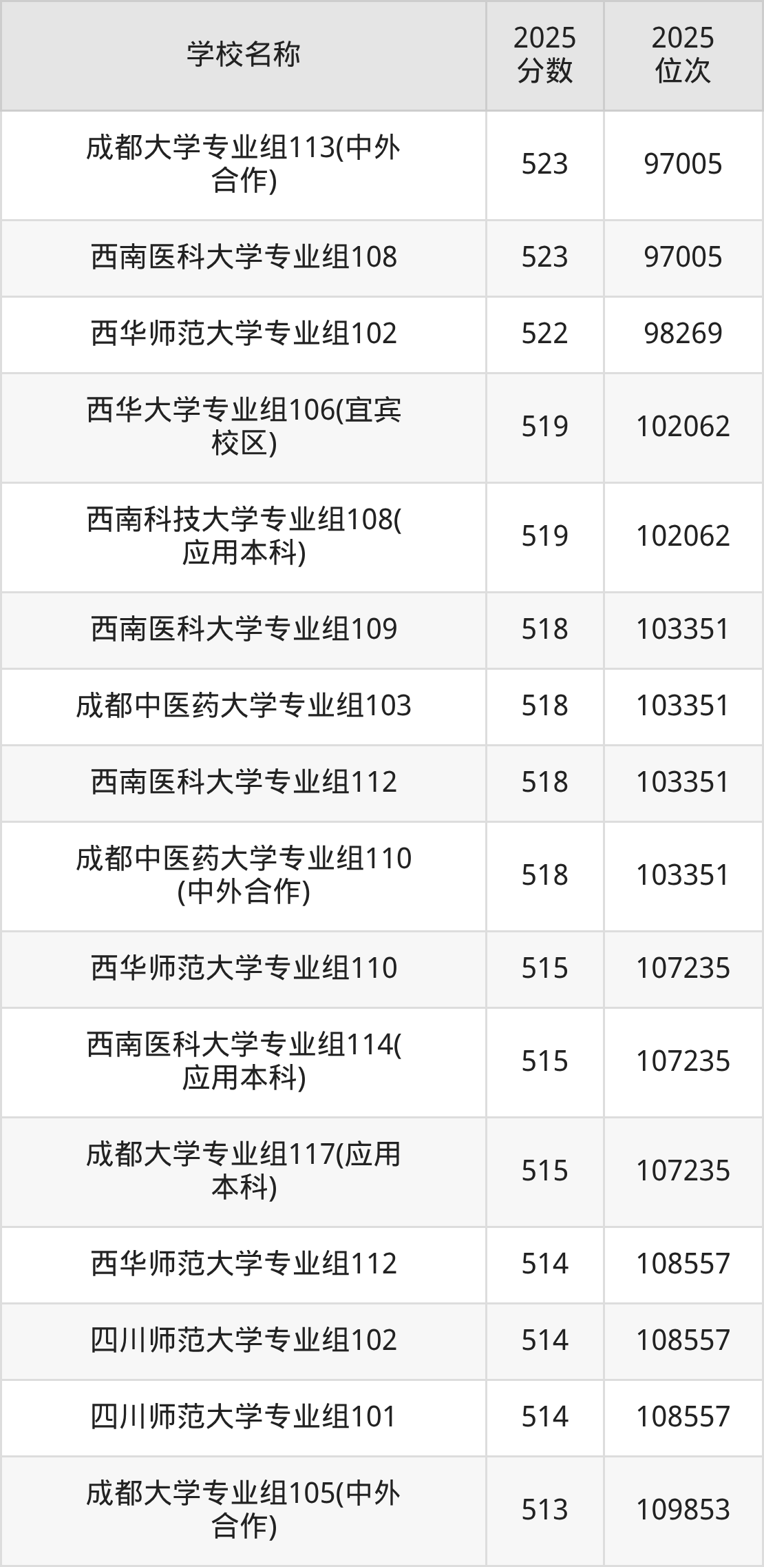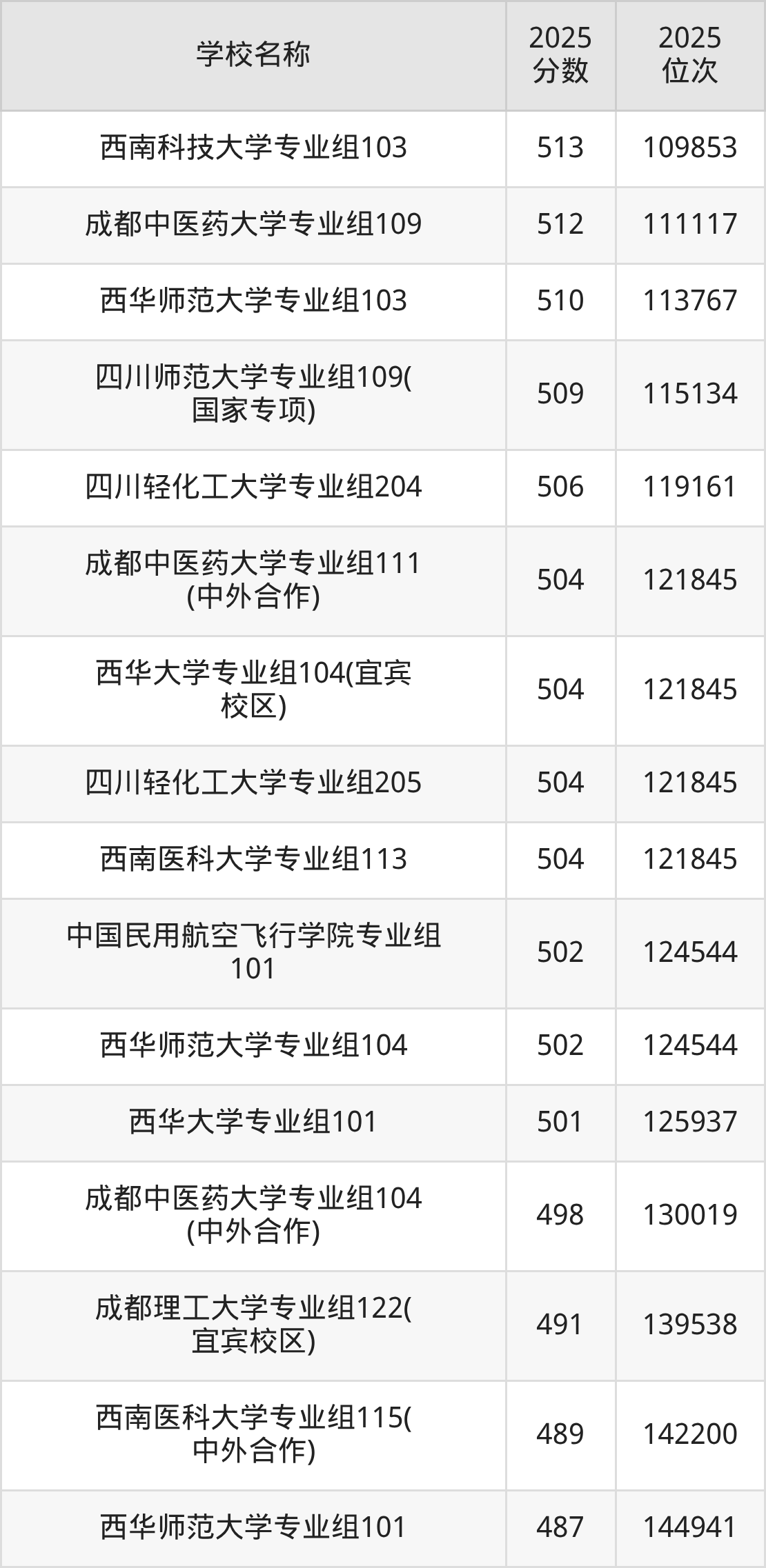 下文为2025年四川省一本大学在四川物理类录取分数线和位次排名表,供大家参考: