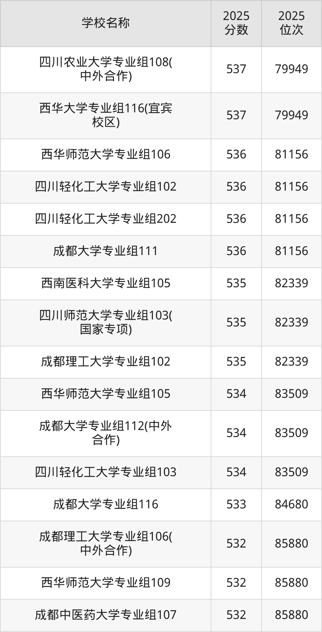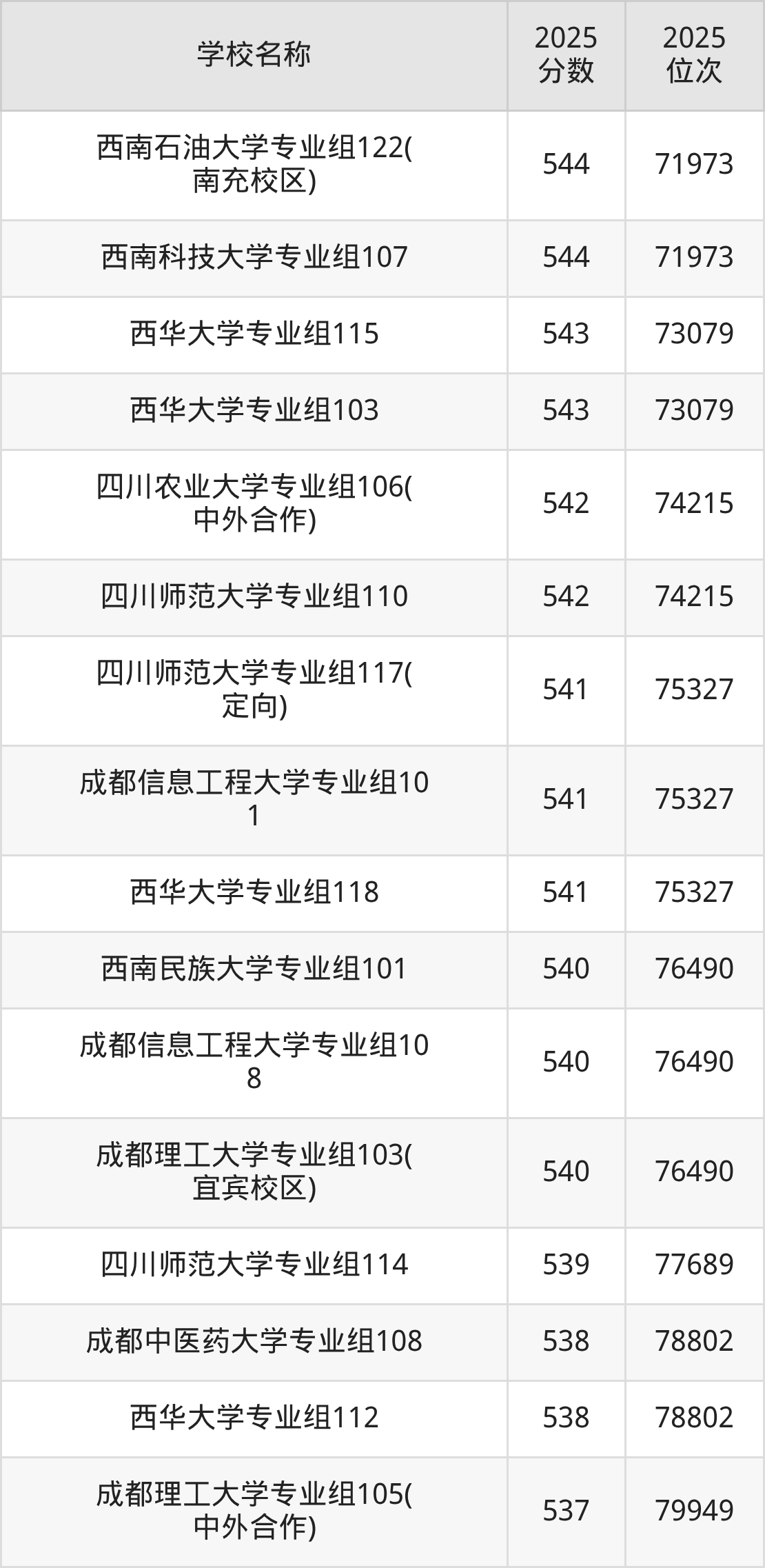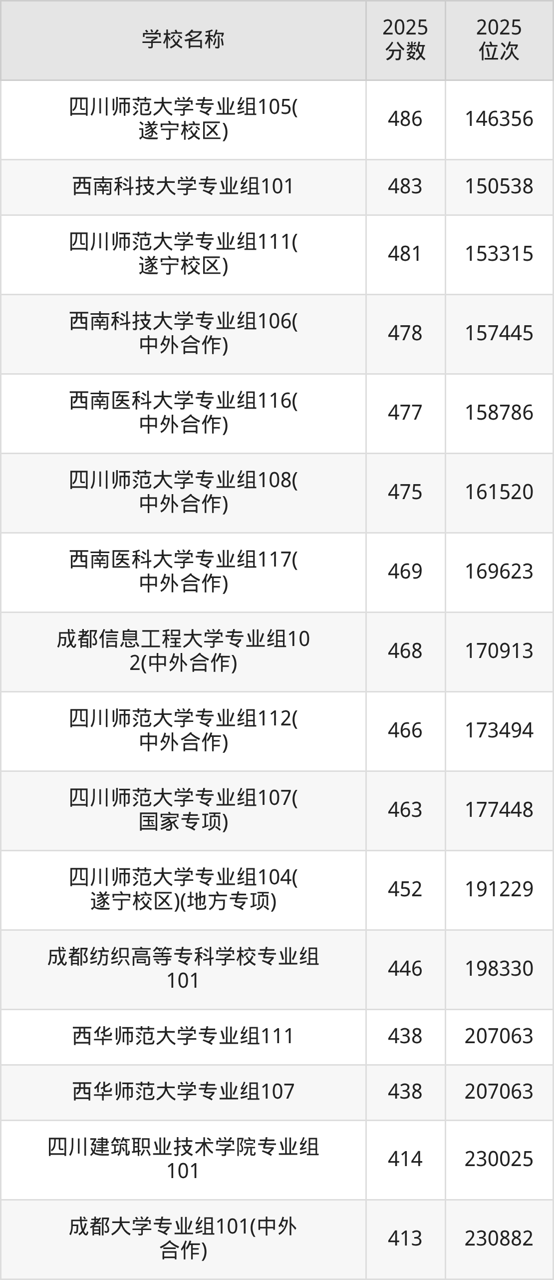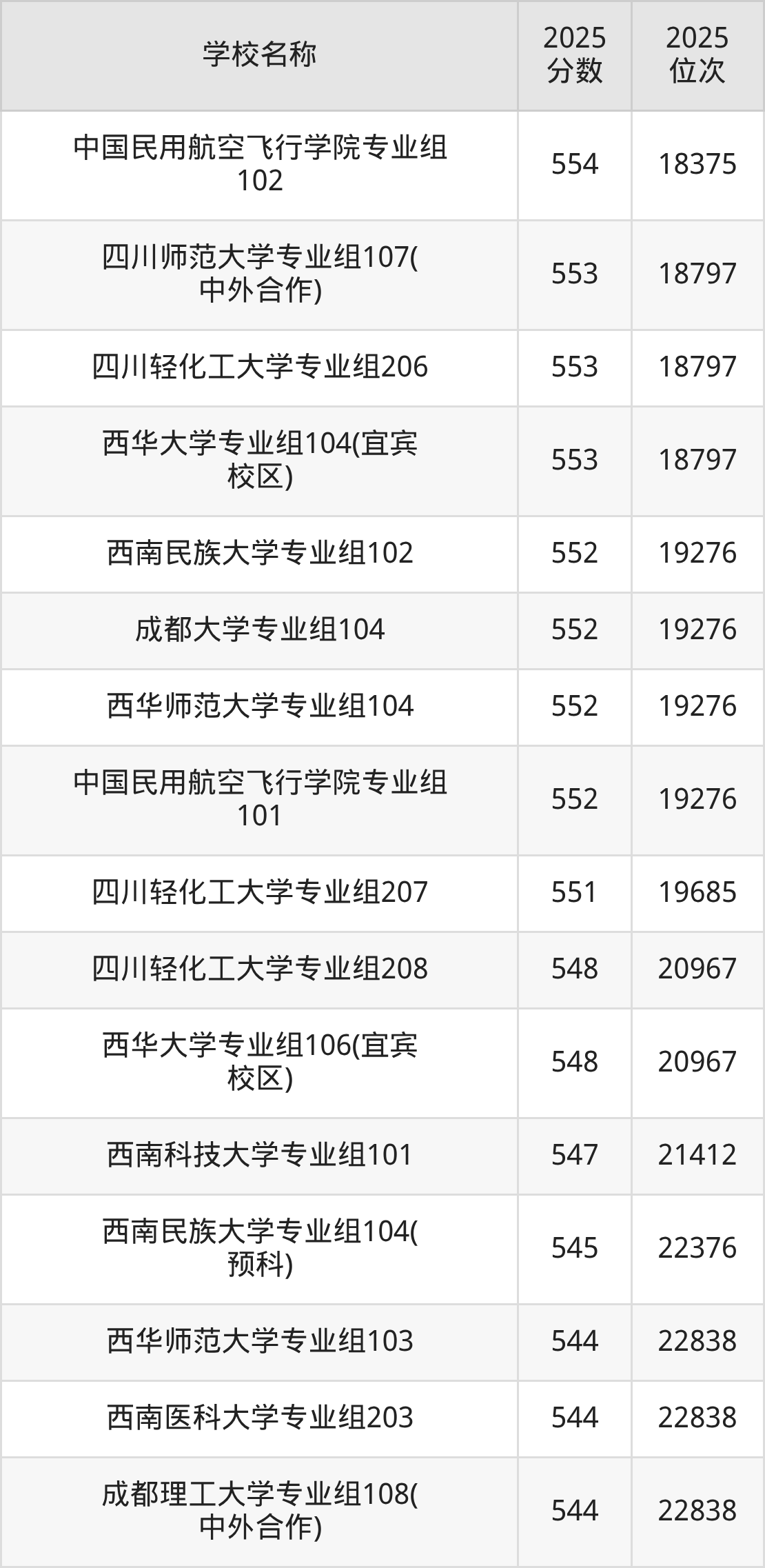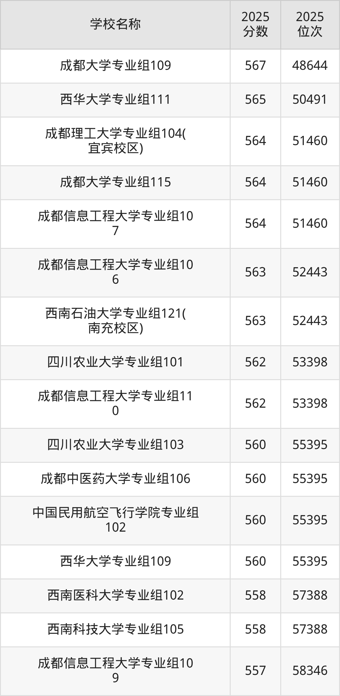 下文为2025年四川省一本大学在四川物理类录取分数线和位次排名表,供大家参考: