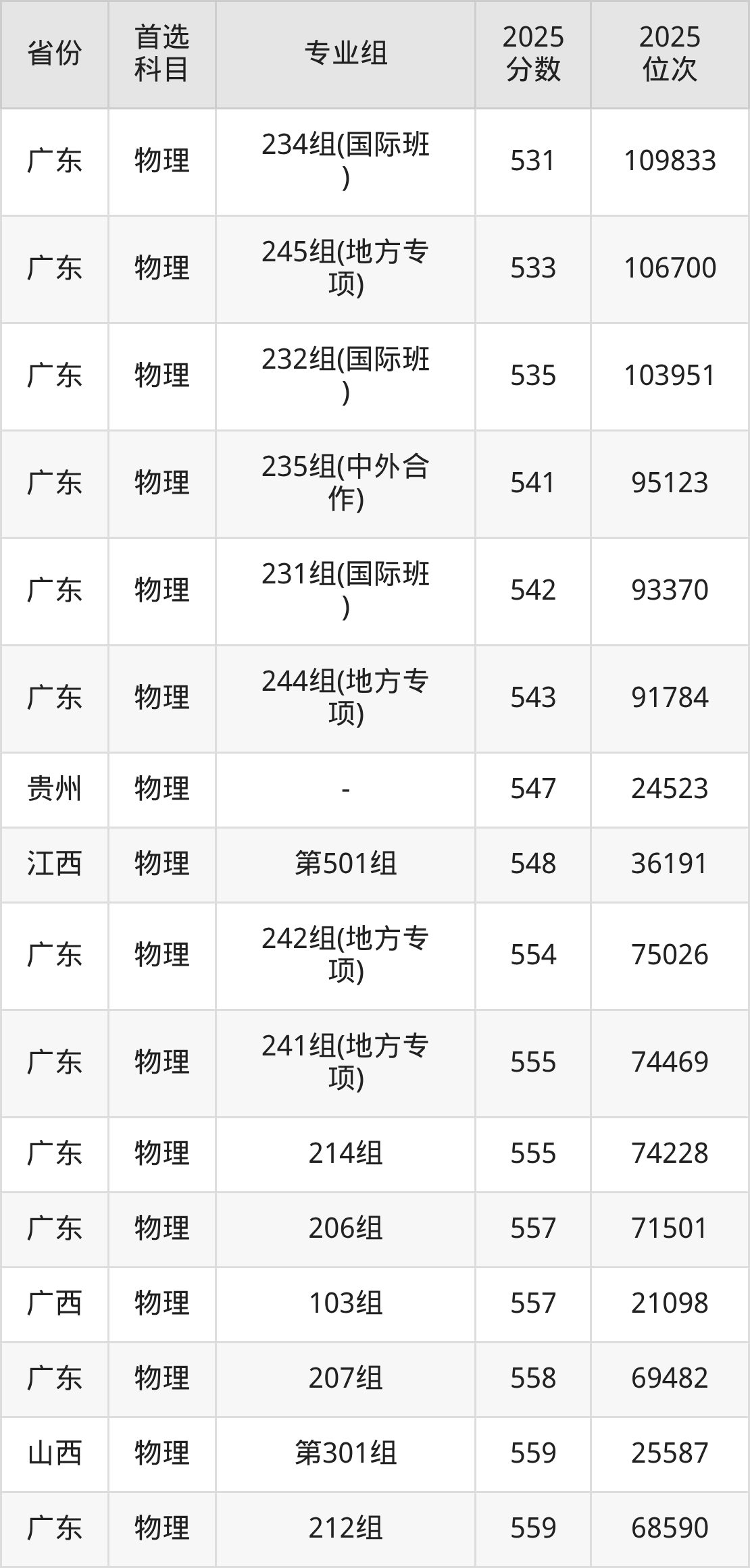 二、广州大学近三年分数线广州大学在广东省近三年(2023年-2025年)录取情况如下: