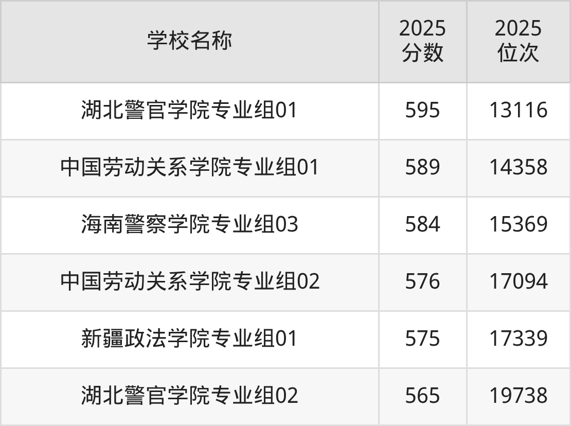 海南高考共有4所二本政法大学在550到600分之间录取,包含湖北警官学院、中国劳动关系学院、海南警察学院、新疆政法学院。