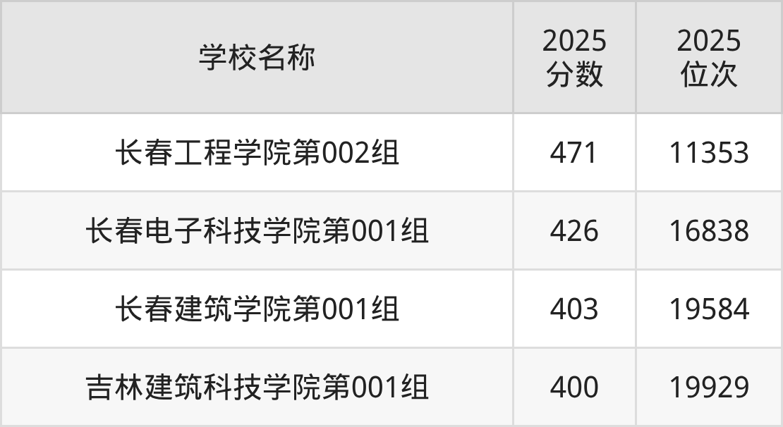 下文为2025年长春市二本理工大学在吉林历史类录取分数线和位次排名表,供大家参考: