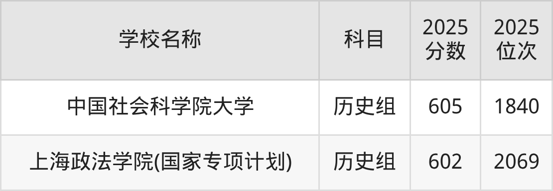 贵州高考历史组共有2所二本公办大学在600到650分之间录取,包含中国社会科学院大学、上海政法学院(国家专项计划)。