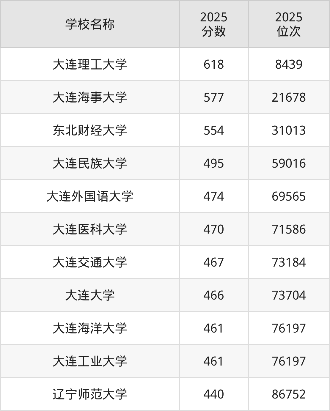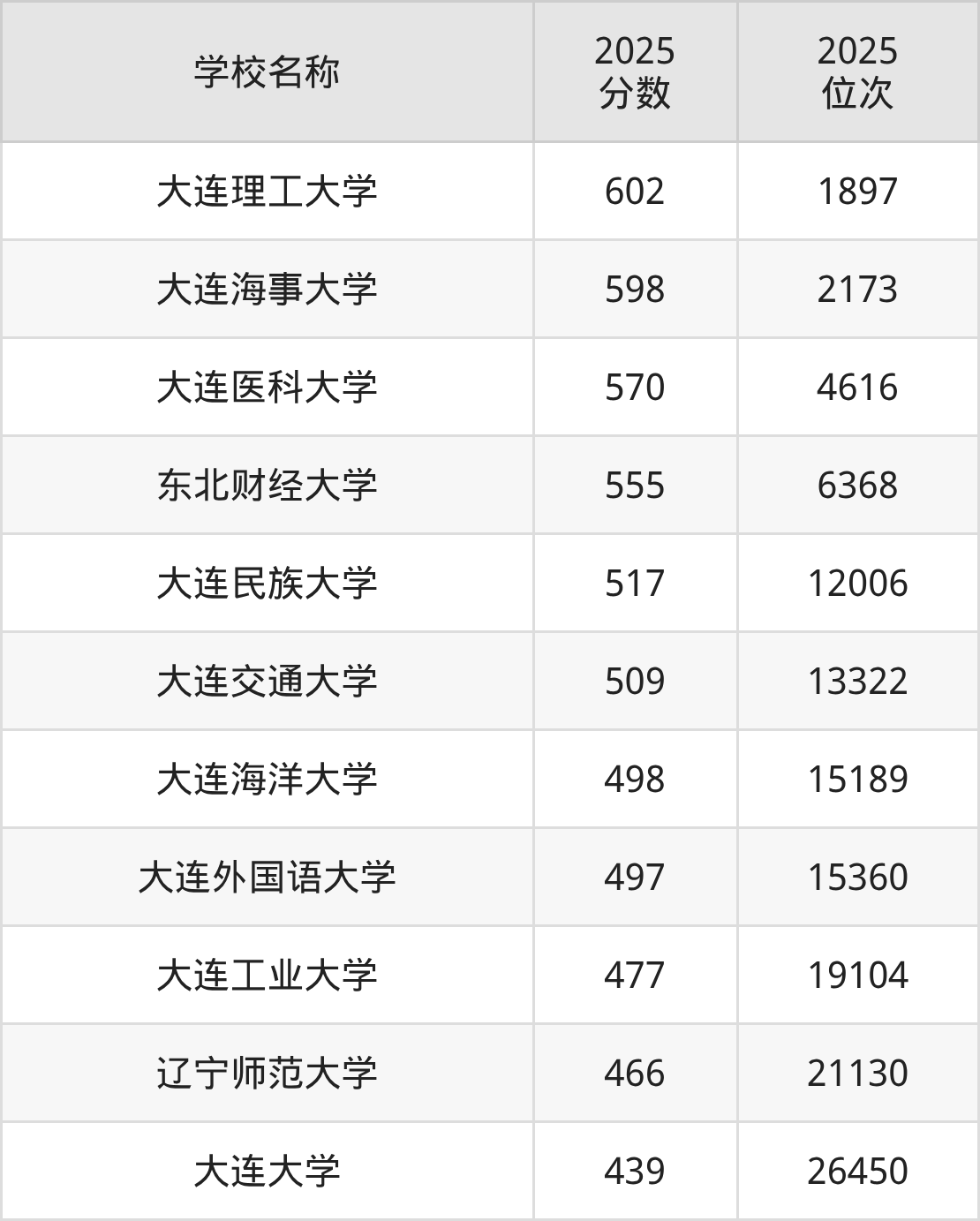 大连一本大学排名及录取分数(2026年参考)