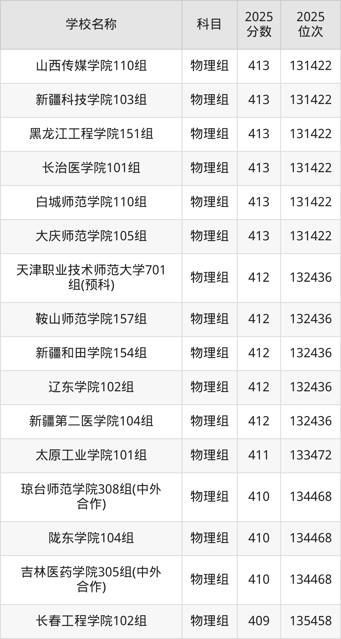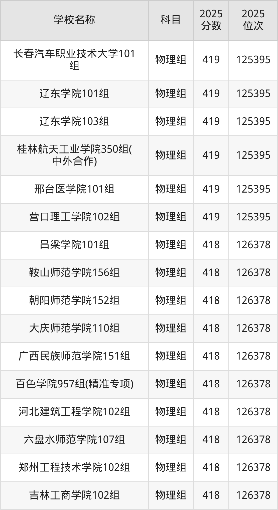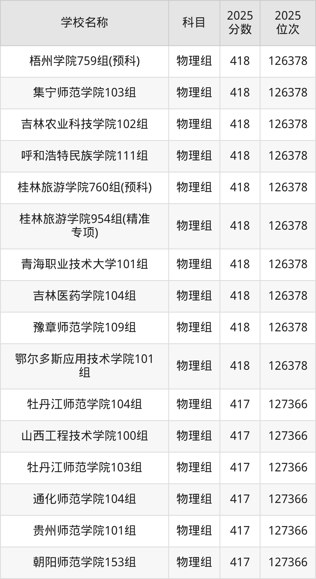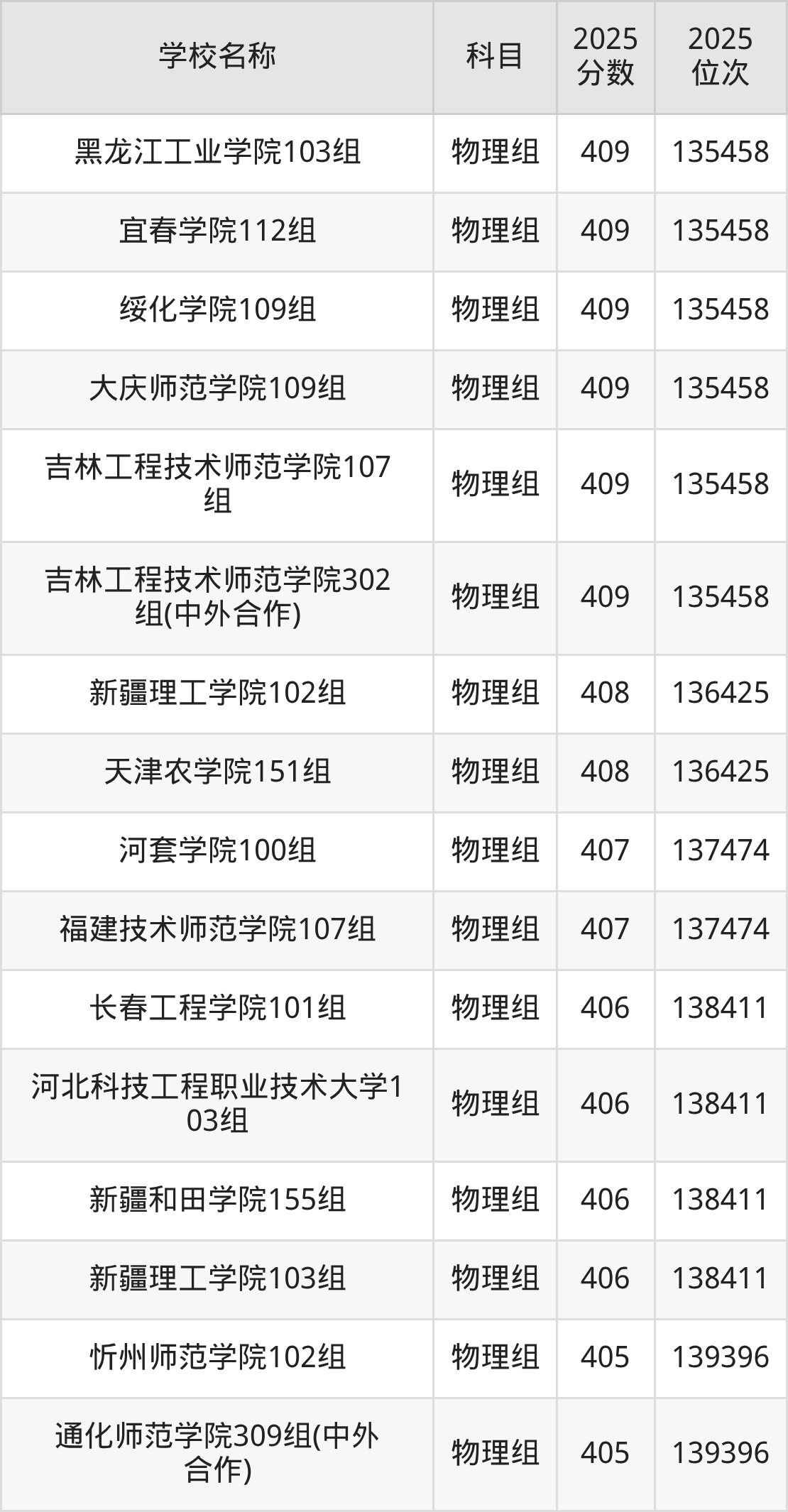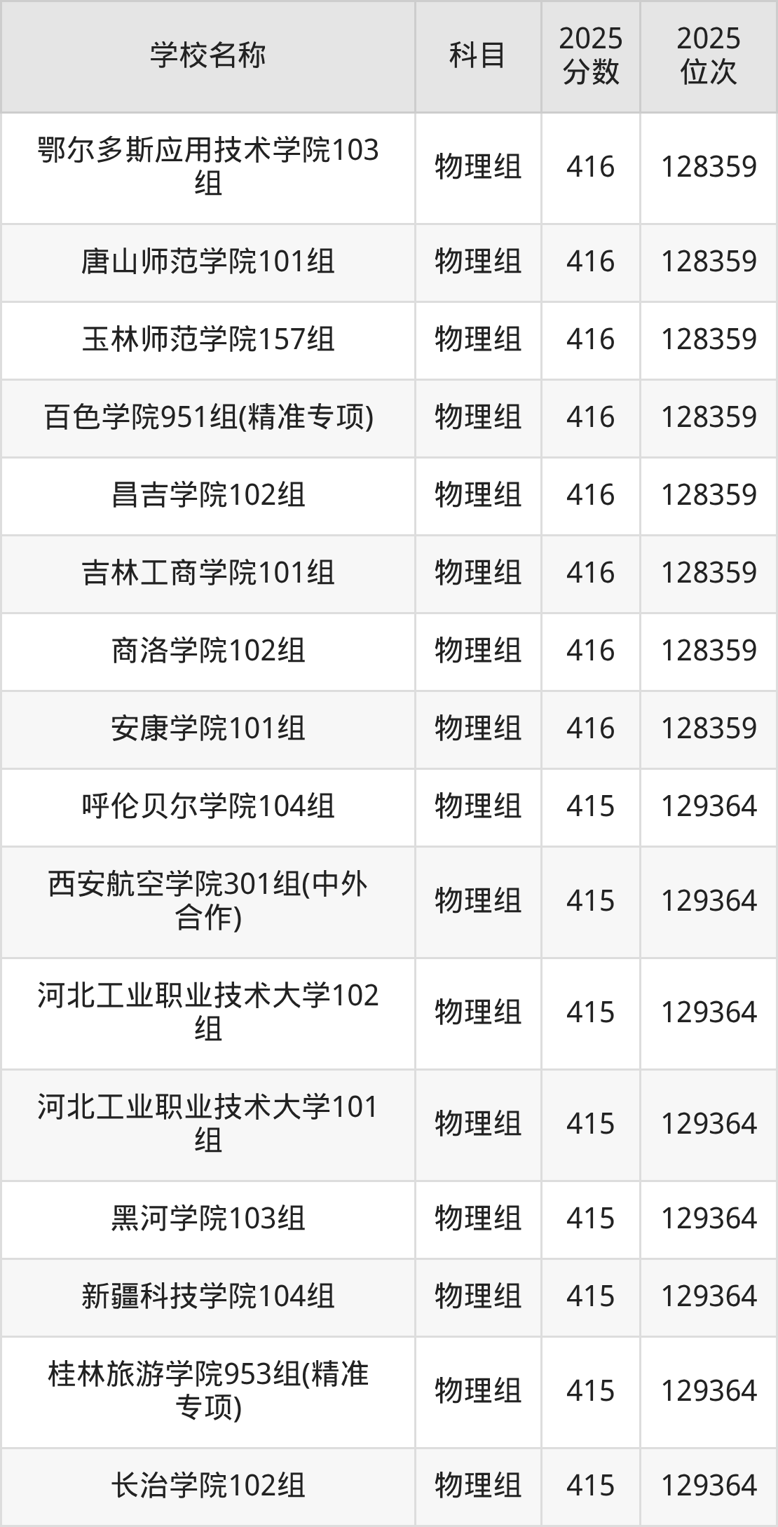 广西高考物理组共有103所二本公办大学在400到420分之间录取,包含唐山师范学院、大庆师范学院、玉林师范学院、绵阳师范学院、齐齐哈尔医学院、吉林工商学院、吉林农业科技学院、广西科技师范学院、广西财经学院、呼和浩特民族学院。